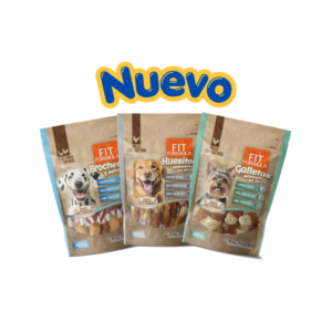 Pack de snacks Fit Formula para perros, compuesto por tres deliciosas opciones con pollo: brochetas 3 sabores, galletas y huesitos. Perfecto para premiar a tu mascota con un snack sabroso y equilibrado.