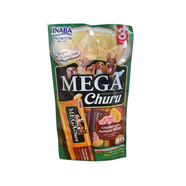 - Cada delicioso tubo del Mega Churu pollo con zapallo 3P contiene 91% de humedad y solo 20 calor铆as. Gu谩rdelo en el congelador para realizar caminatas de verano, viajes al parque o caminatas y brind茅 a su cachorro un refrigerio saludable, fr铆o e hidratante.