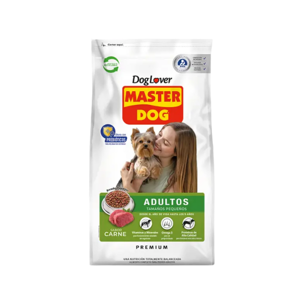 Alimento seco especialmente formulado para perros adultos de razas peque帽as. MASTER DOG Adulto Razas Peque帽as aporta prote铆nas de alta calidad, vitaminas y minerales que favorecen una 贸ptima digesti贸n, piel sana y pelaje brillante. Croquetas adaptadas al tama帽o de su mand铆bula. Presentaci贸n de 21 kg.