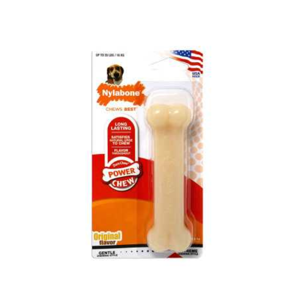 Juguete masticable Nylabone, tamaño M, sabor a pollo. Ayuda a mantener los dientes limpios y las encías saludables mientras el perro se divierte.