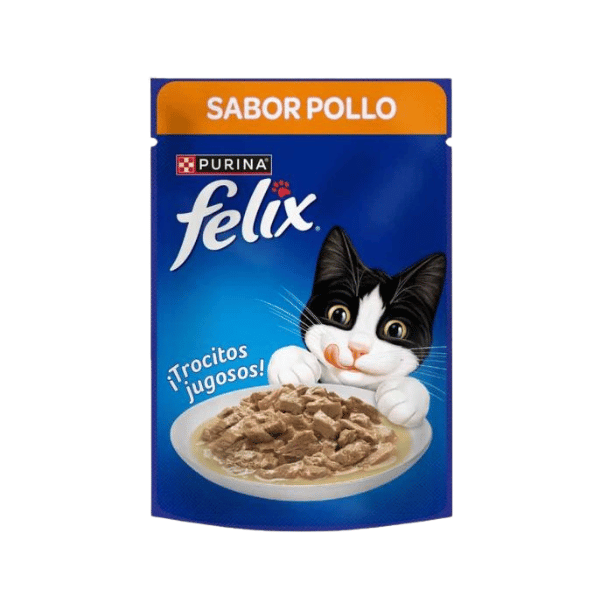 F茅lix Alimento balanceado completo h煤medo para gatos adultos con actividad normal de todas las razas, de sabor delicioso, con buenas fuentes de 谩cidos grasos esenciales Omega 6 con la combinaci贸n correcta de minerales y vitaminas para satisfacer el 100% de las necesidades diarias de tu gato.